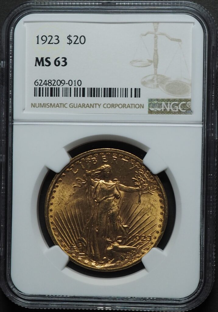 【NGC鑑定 MS63】アメリカ ダブルイーグル20ドル金貨(セントゴーデンス金貨) 1923年
