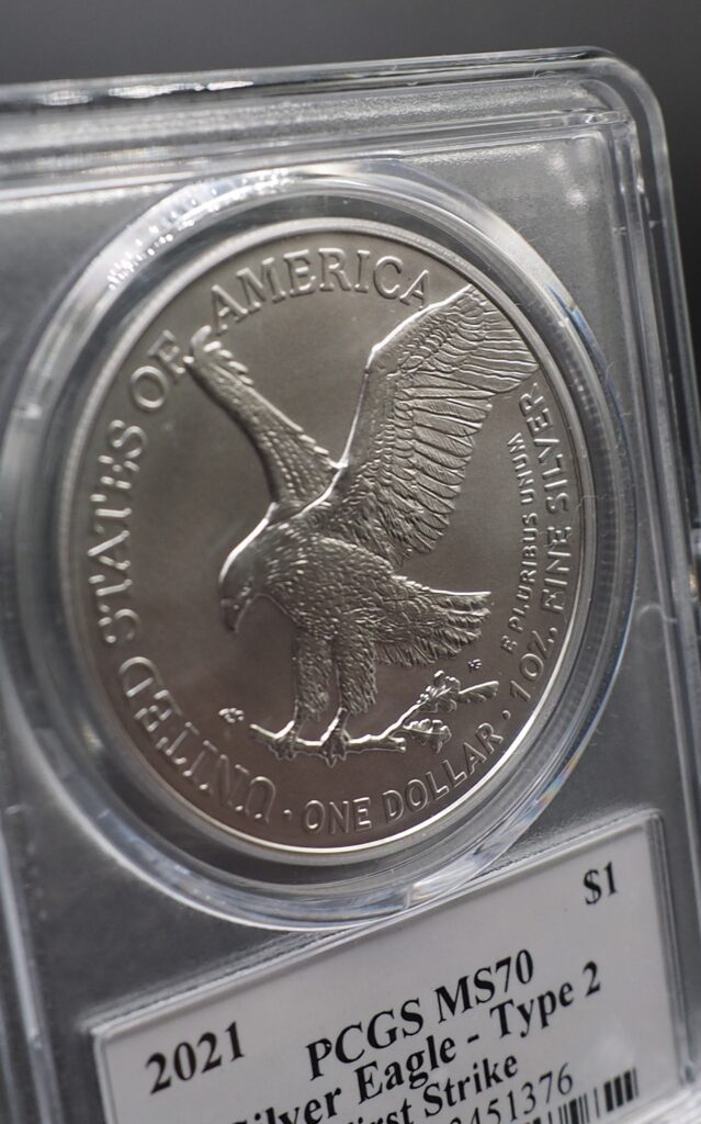 【PCGS鑑定 MS70】アメリカ イーグル1ドル銀貨(1オンス、新デザイン:タイプ2) 2021年